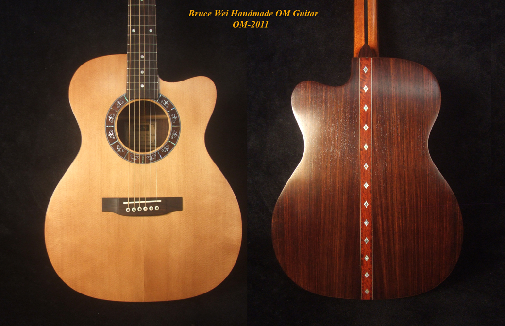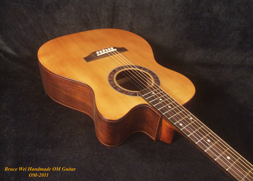 Handmade OM Cutaway Acoustic Guitar, Solid Indian Rosewood, Mop Inlay, Soft-Bag, Bruce Wei (2011)