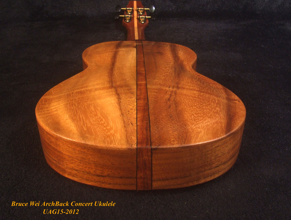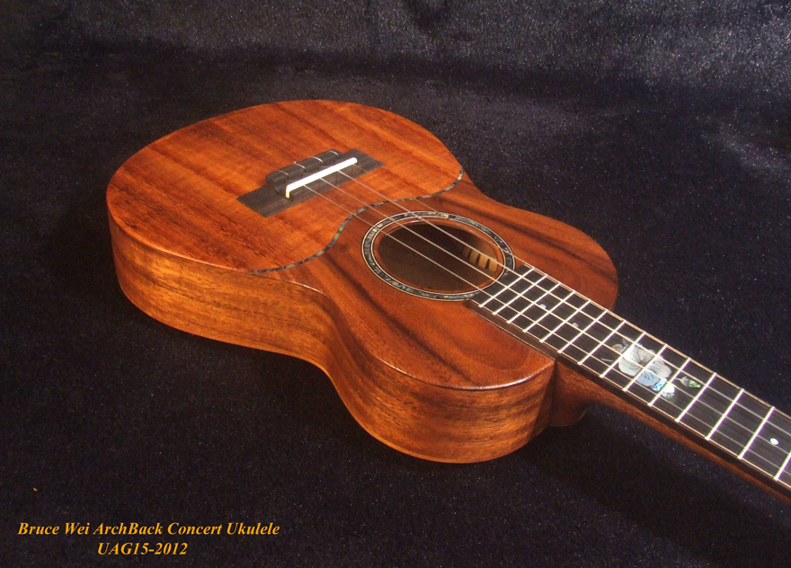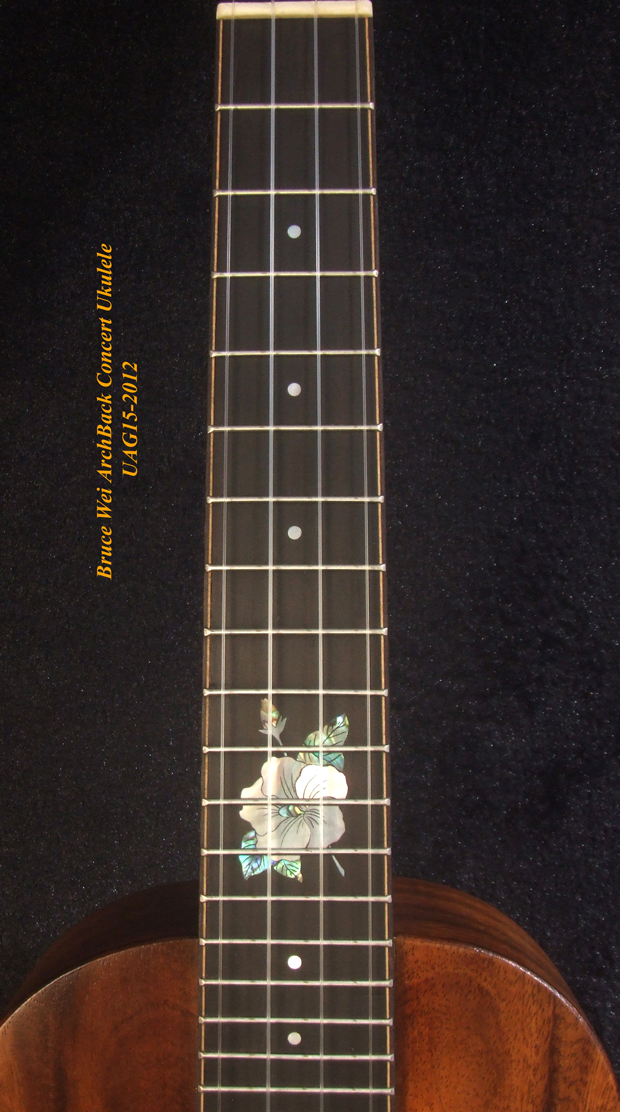 Handmade Solid Carved ArchBack Hawaiian Koa, Acacia Concert Ukulele, Hibiscus Inlay, Bruce Wei UAG15-2012