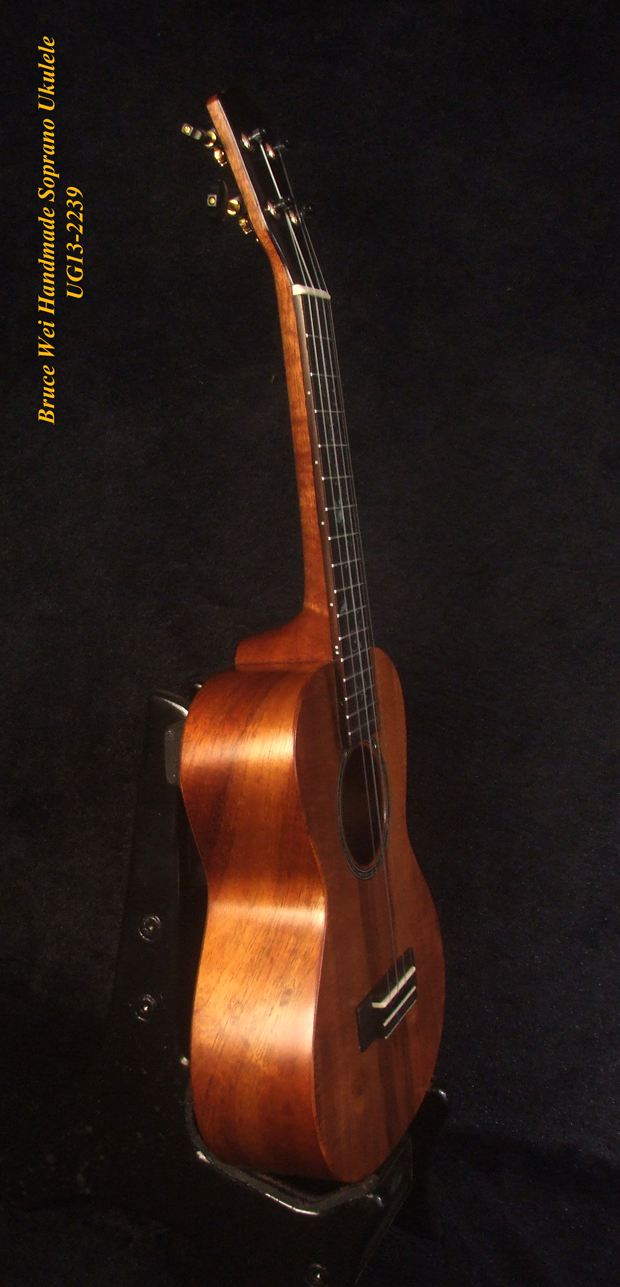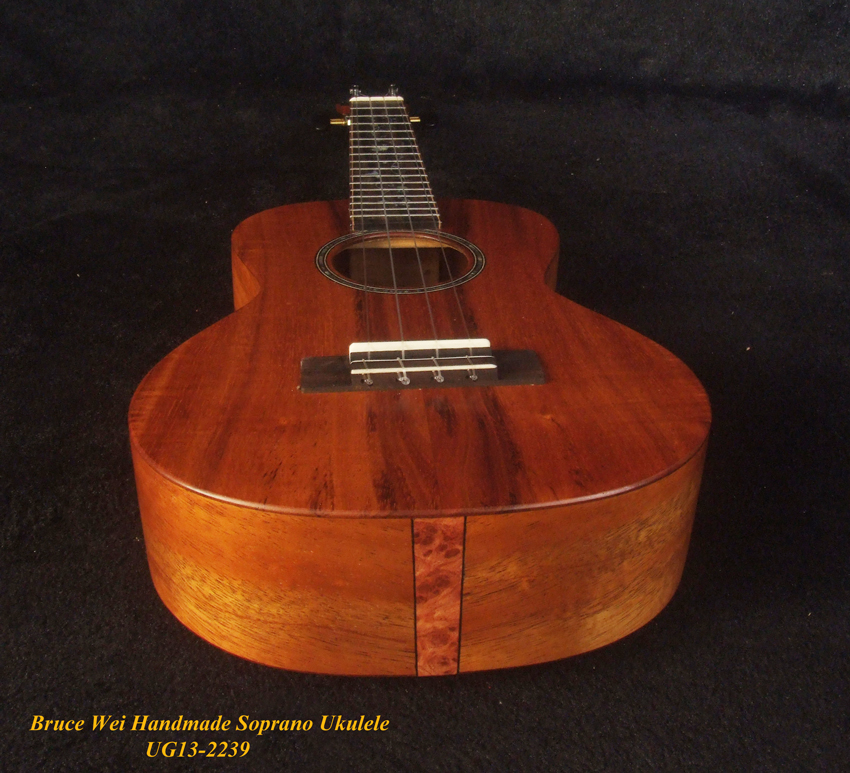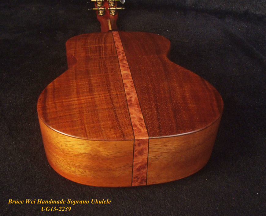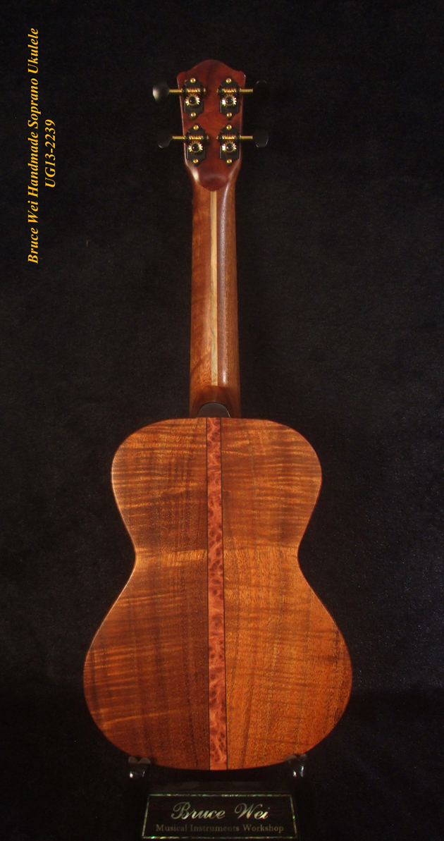 Handmade Solid Curly Hawaiian Koa Soprano Ukulele, HummingBird Vine Inlay, Bruce Wei UG13-2239