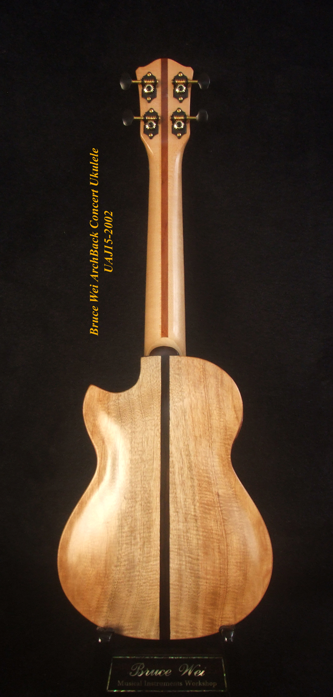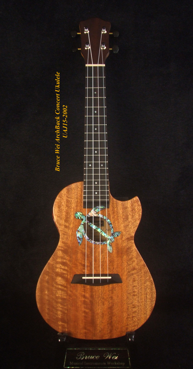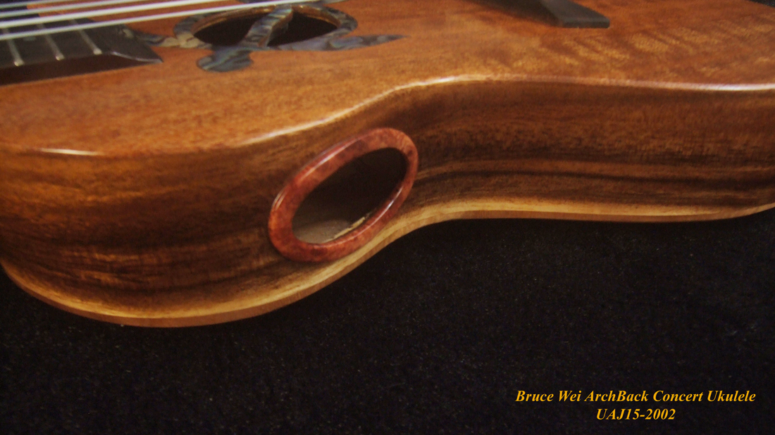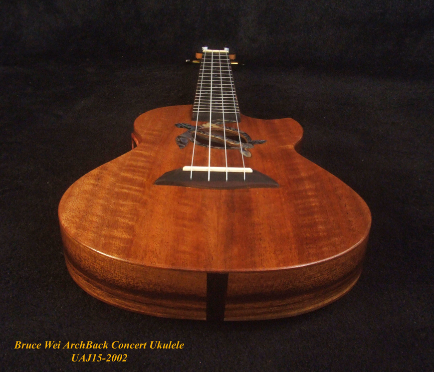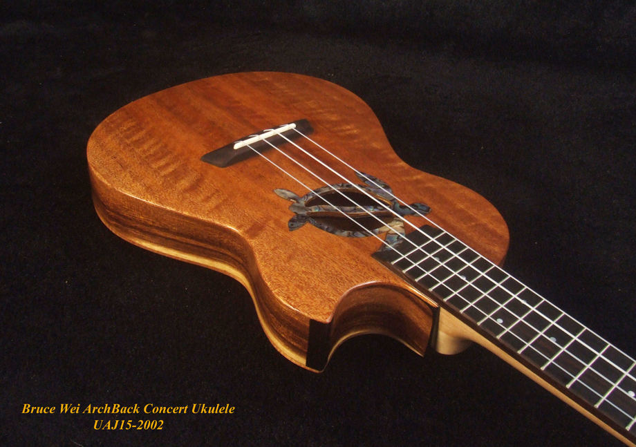Solid Curly Mango, Curly Maple, ArchBack Concert Ukulele, Turtle Soundhole, Bruce Wei UAJ15-2002