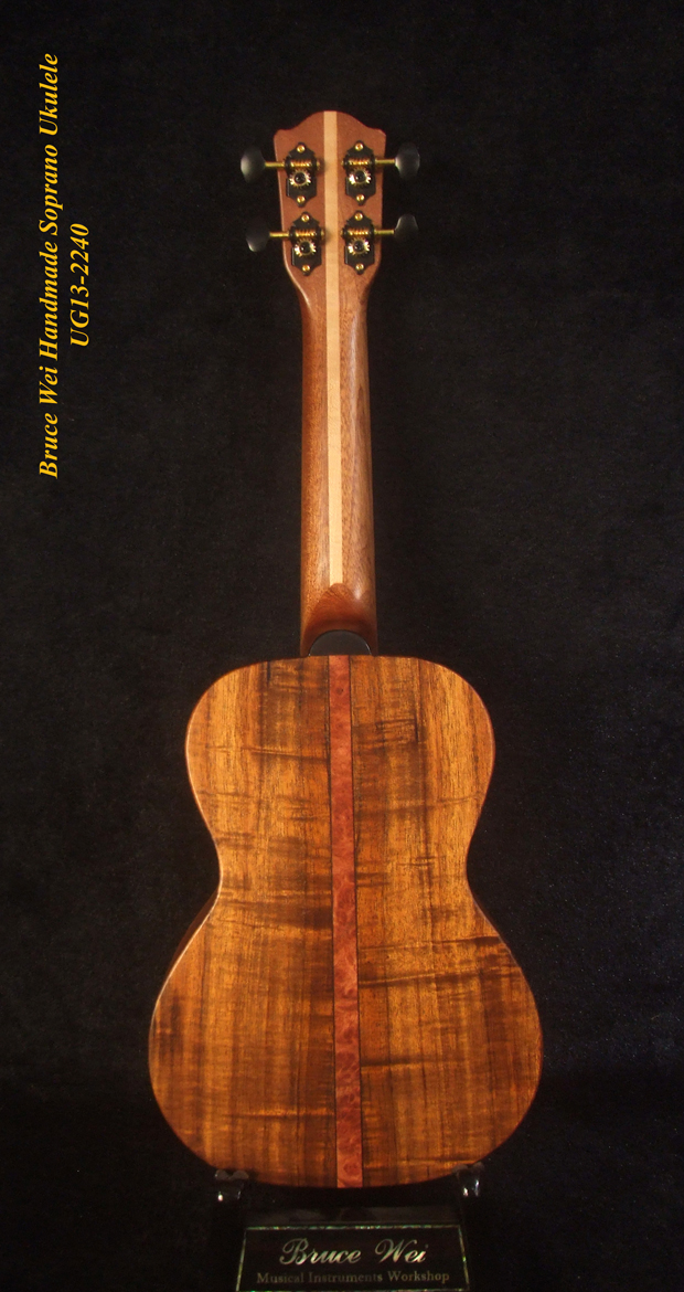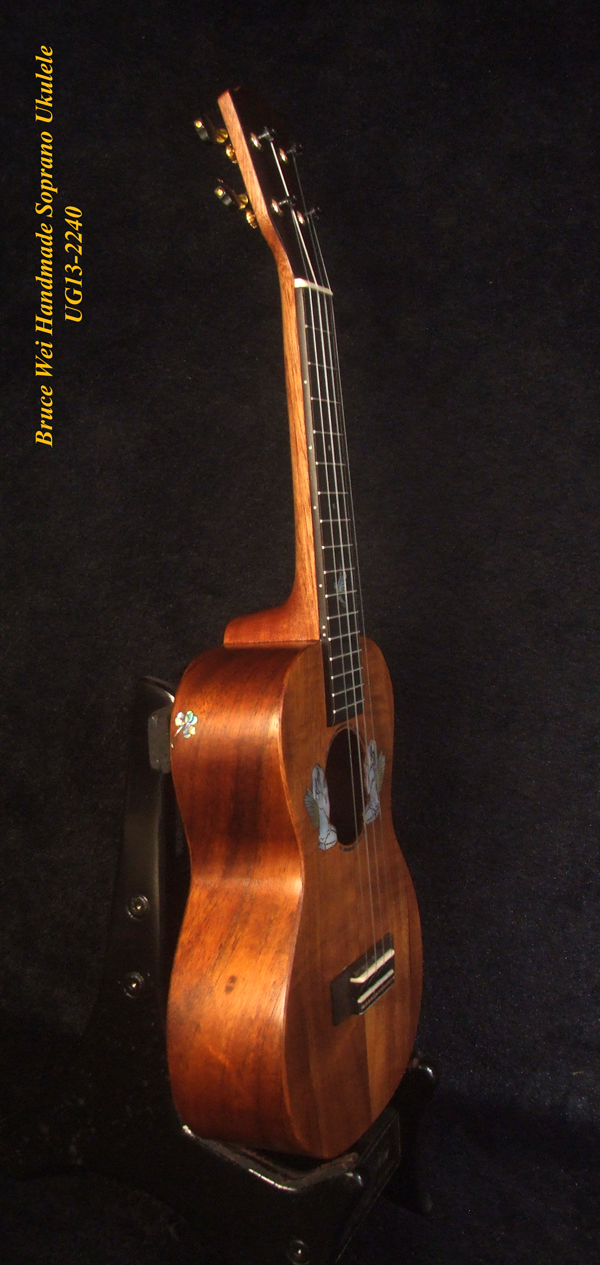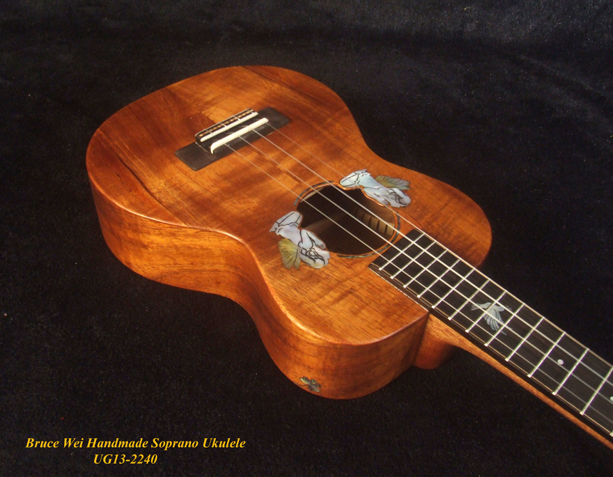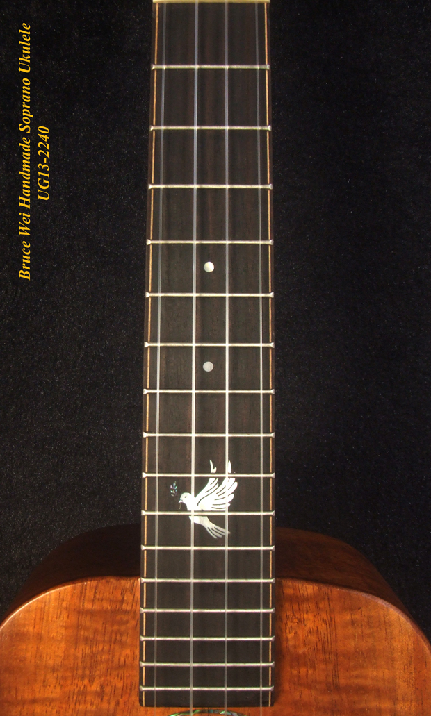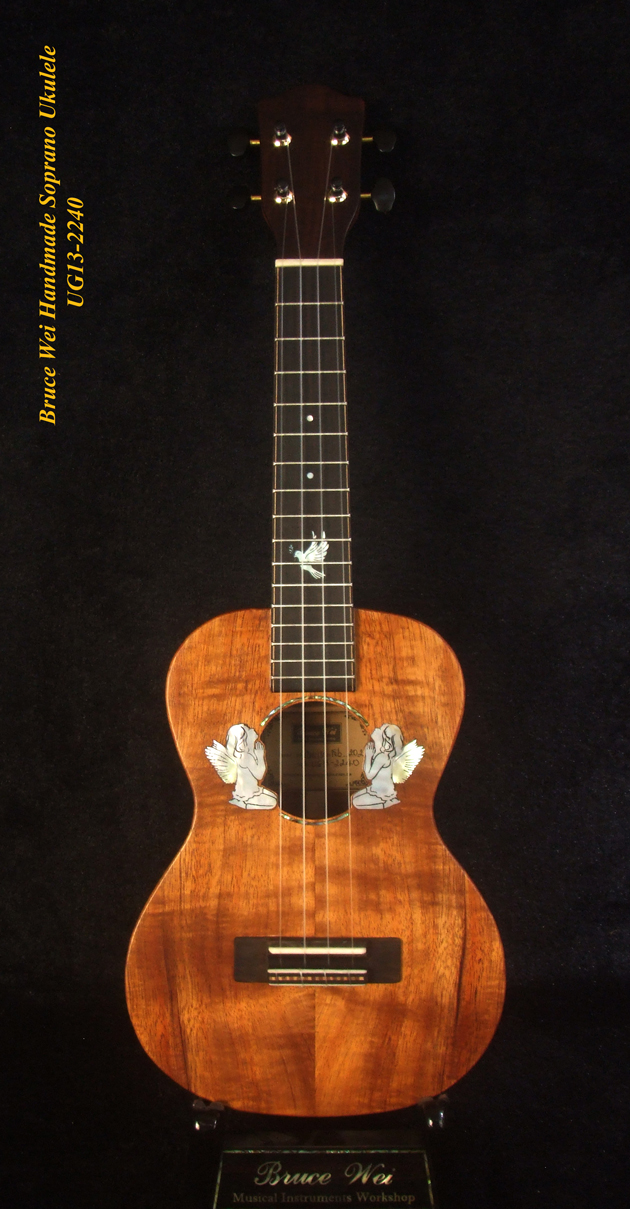 Handmade Solid Hawaiian Koa Soprano Ukulele, Angel, Dove Inlay, Soft-bag, Bruce Wei UG13-2240