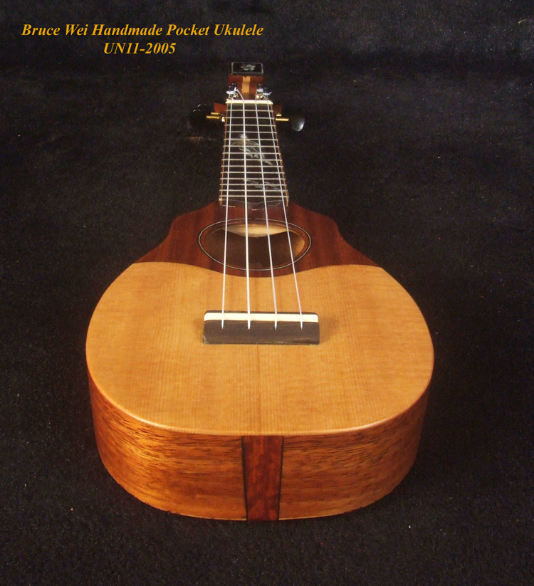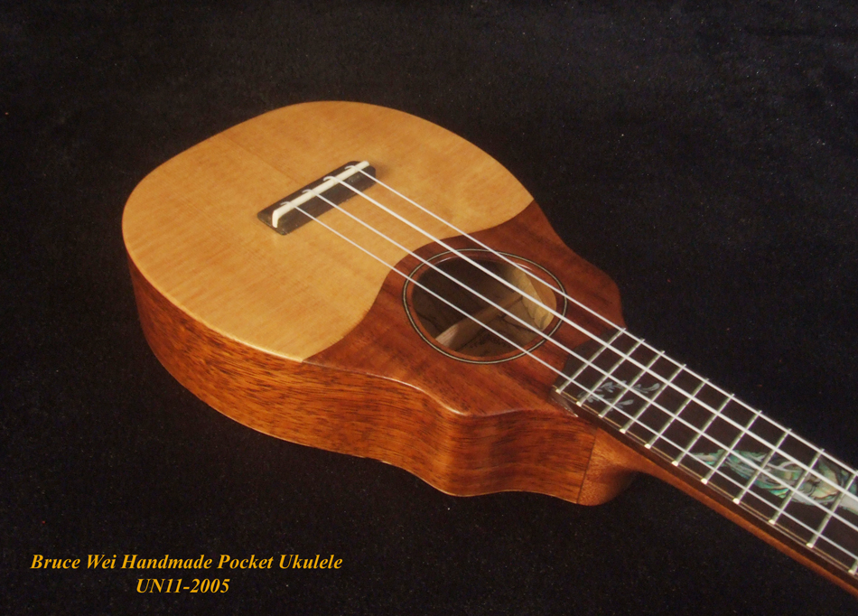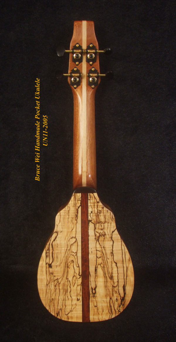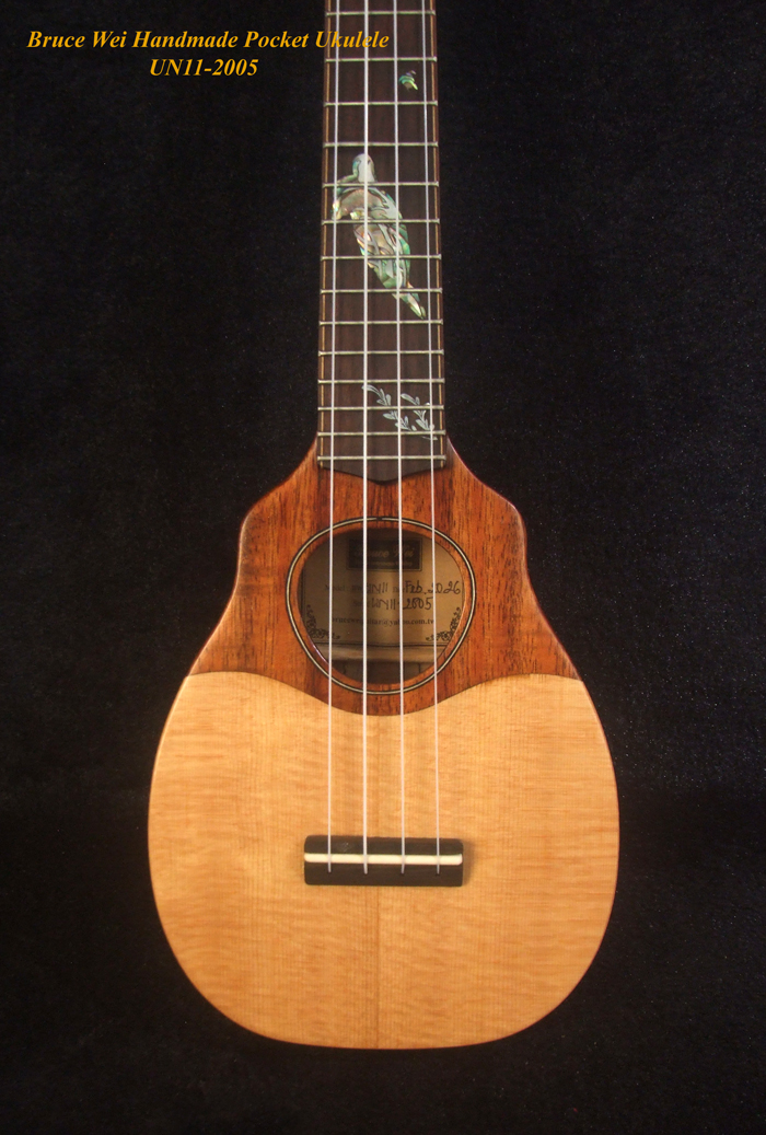 Handmade Sopranissimo/ Pocket Ukulele, Solid Hawaiian Koa, Spalted Maple, Turtle inlay, Curved Head, Bruce Wei UN11-2005