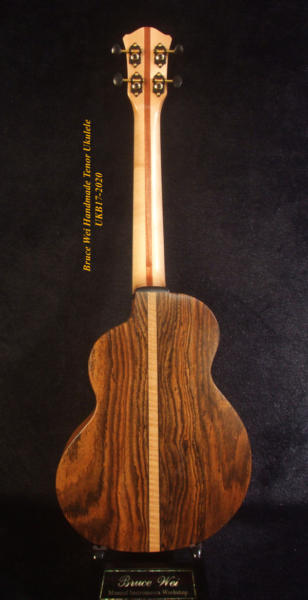 Handmade Tenor Ukulele, Solid Acacia, Bocote, Abalone & MOP Inlay, Soft-bag, Bruce Wei UKB17-2020