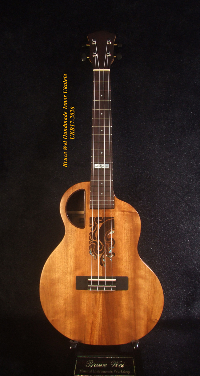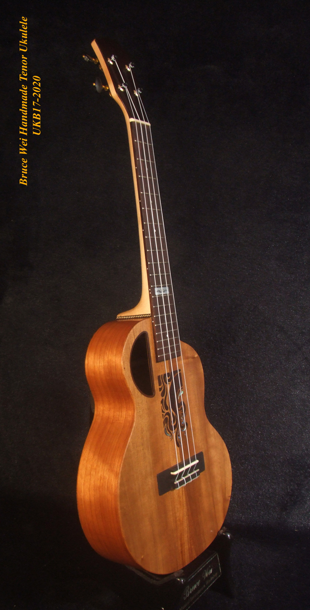 Handmade Tenor Ukulele, Solid Acacia, Bocote, Abalone & MOP Inlay, Bruce Wei UKB17-2020