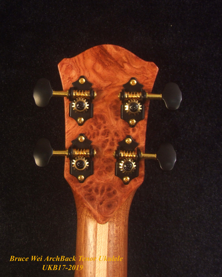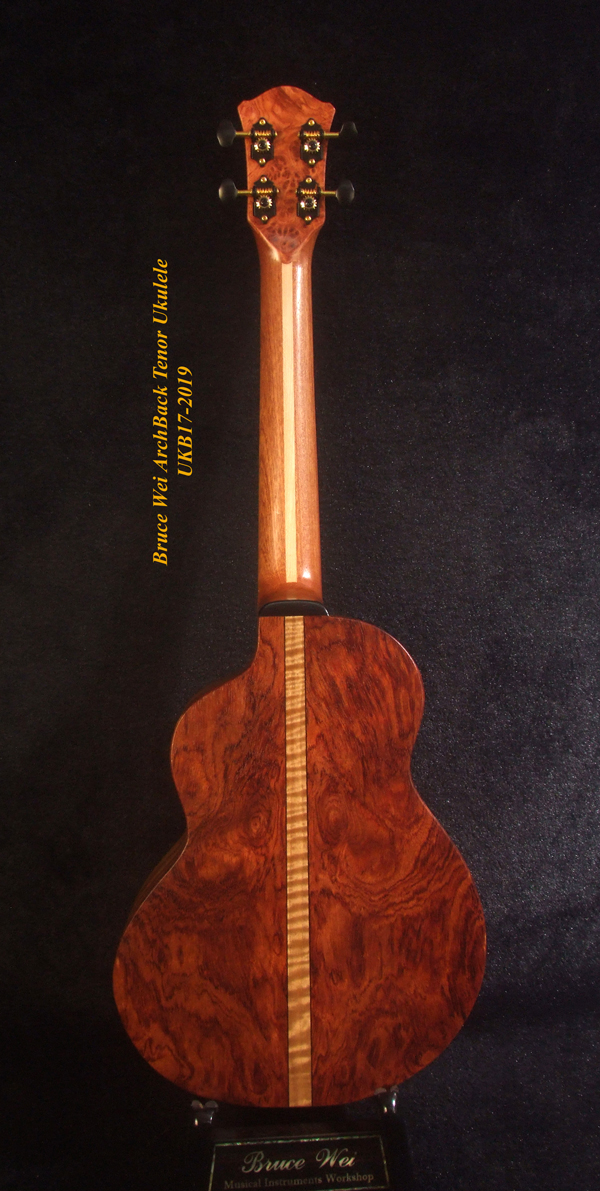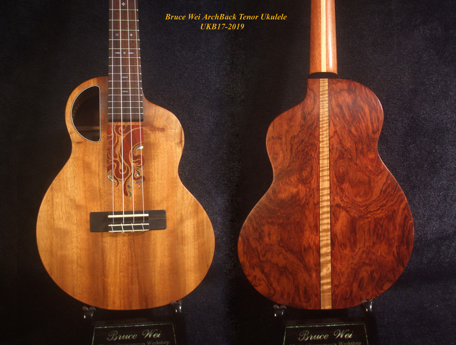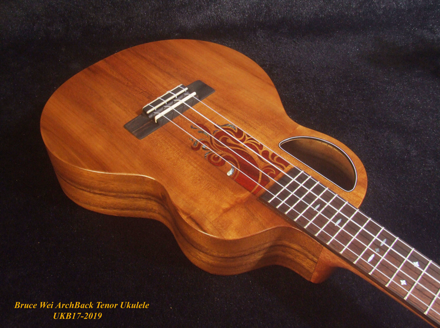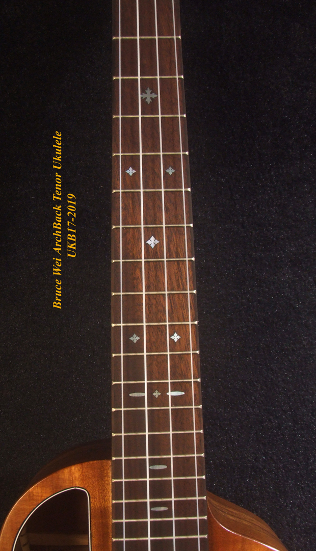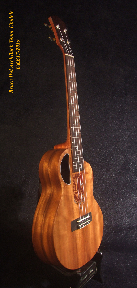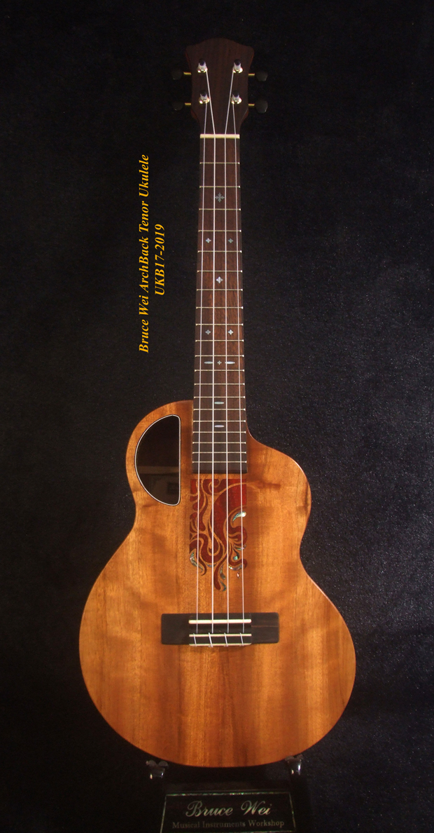 Handmade Tenor Ukulele, Solid Hawaiian Koa, Rosewood, Abalone & MOP Inlay, Soft-bag, Bruce Wei UKB17-2019
