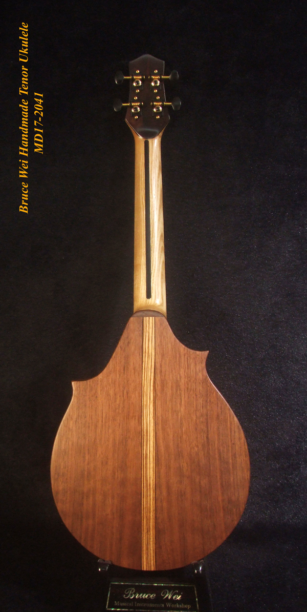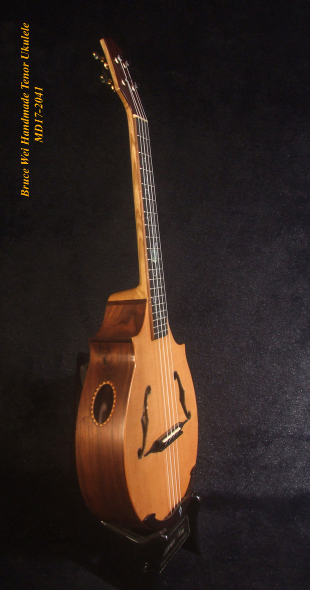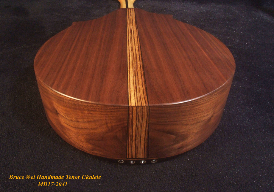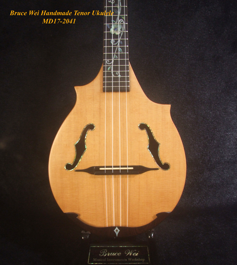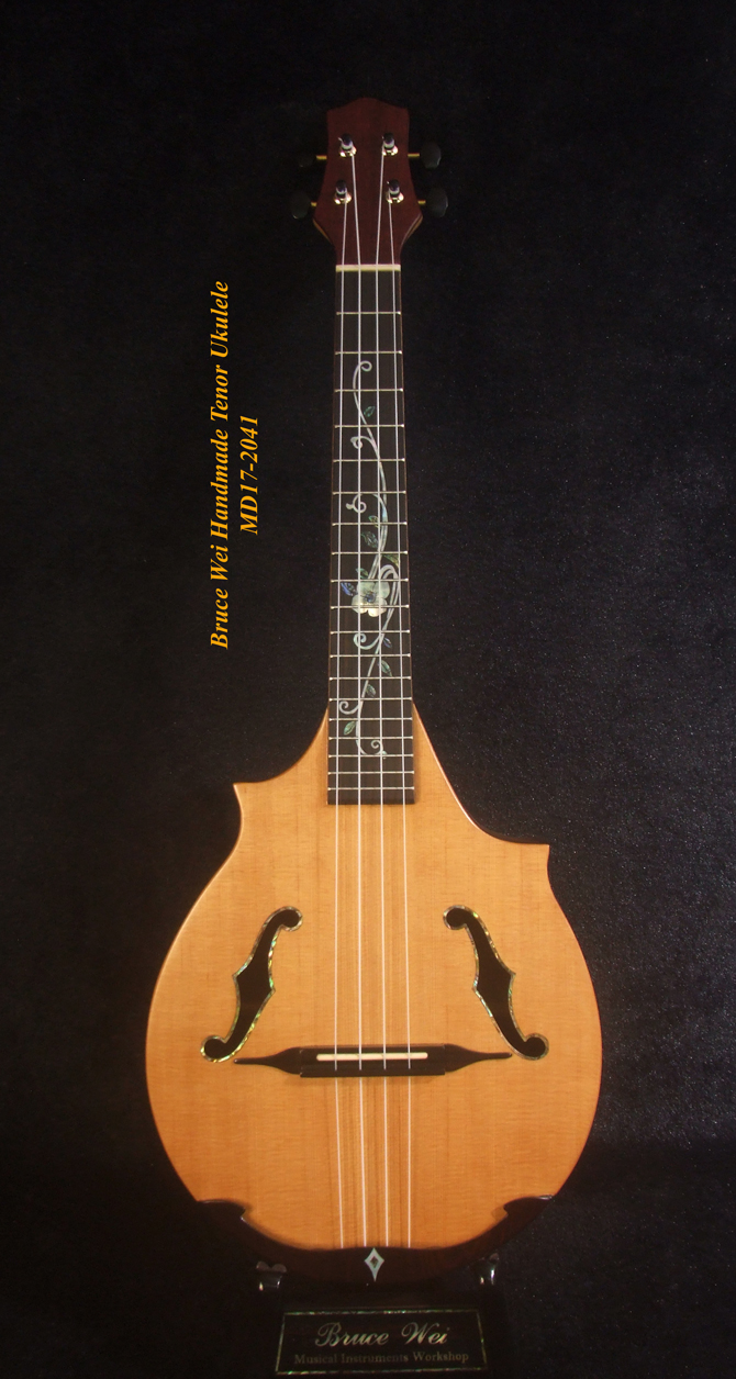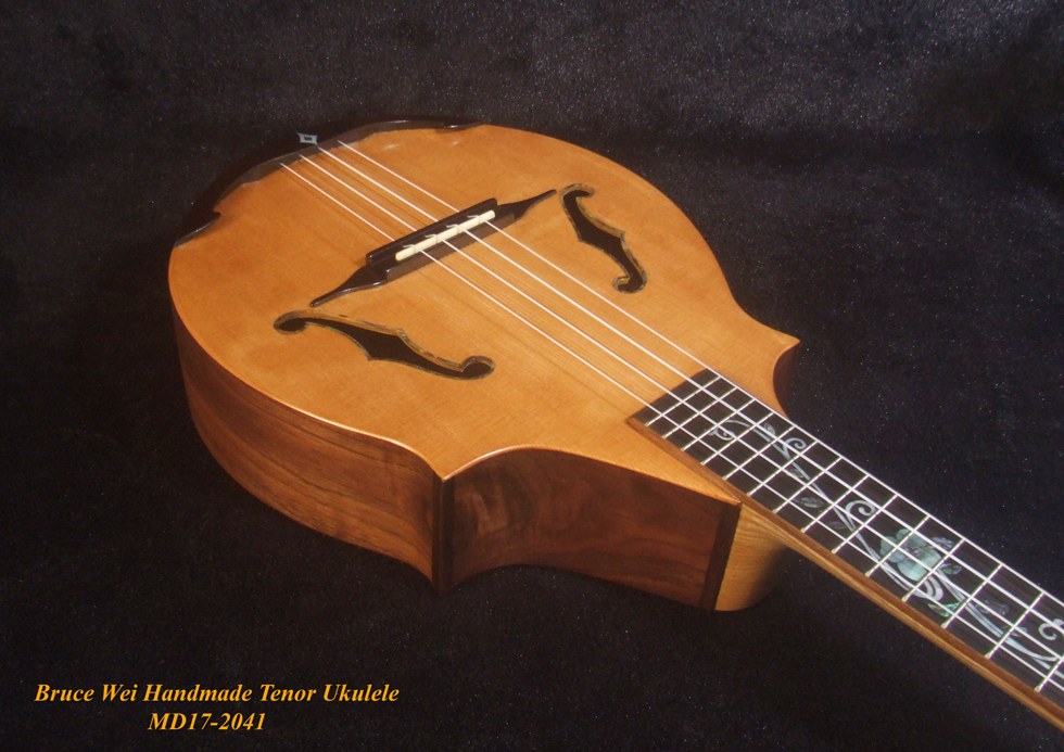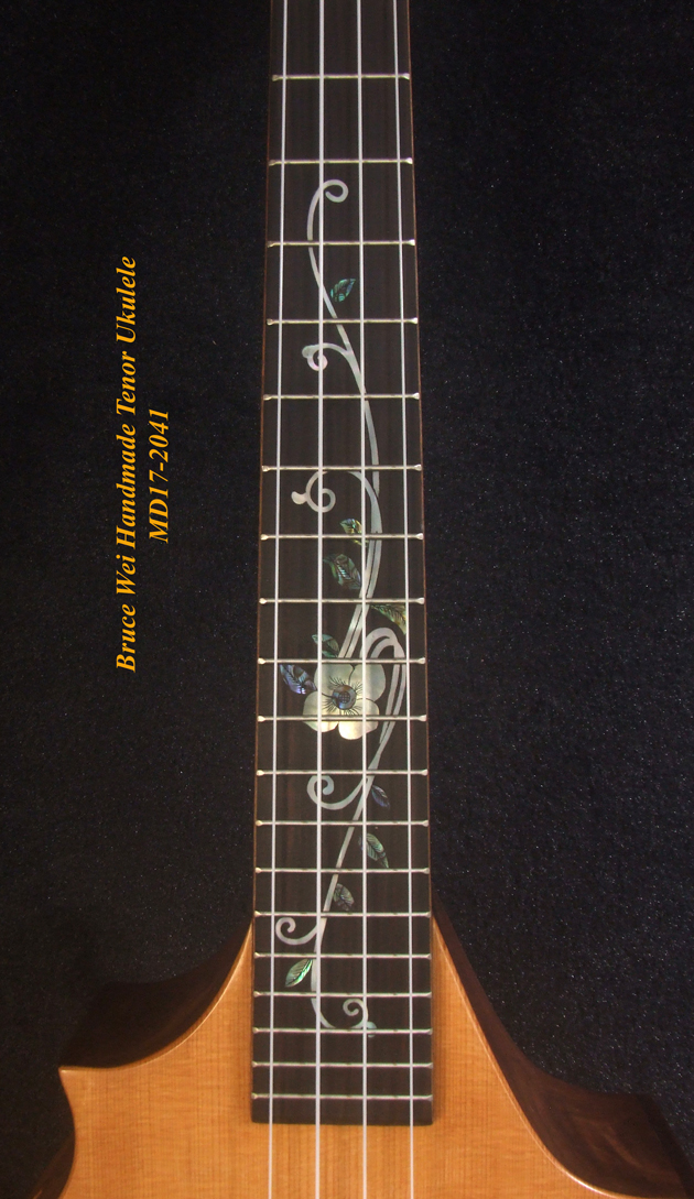 Handmade Tenor Ukulele, Solid Spruce, Walnut Floral inlay, Soft-bag, Bruce Wei MD17-2041