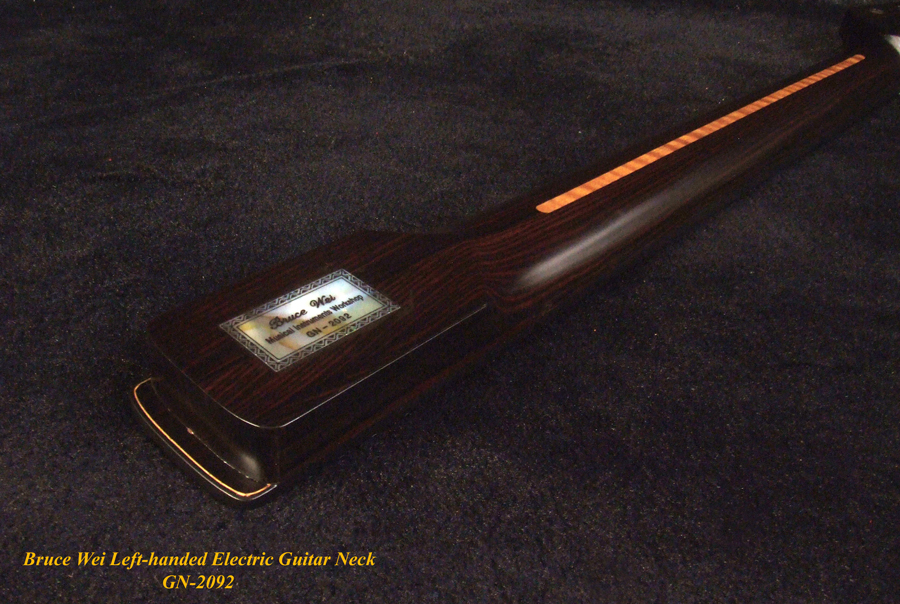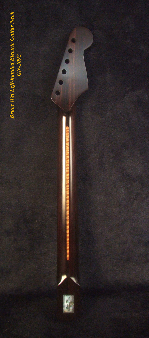 Left-Handed Electric Guitar Replacement Strat Neck, Handcrafted Solid Macassar Ebony, Bruce Wei GN-2092
