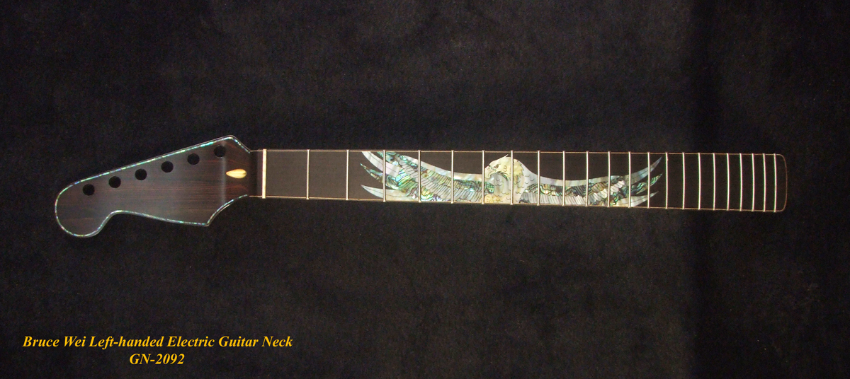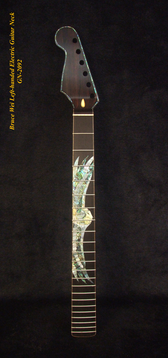 Left-Handed Electric Guitar Replacement Strat Neck, Handcrafted Solid Macassar Ebony, Eagle inlay, Bruce Wei GN-2092