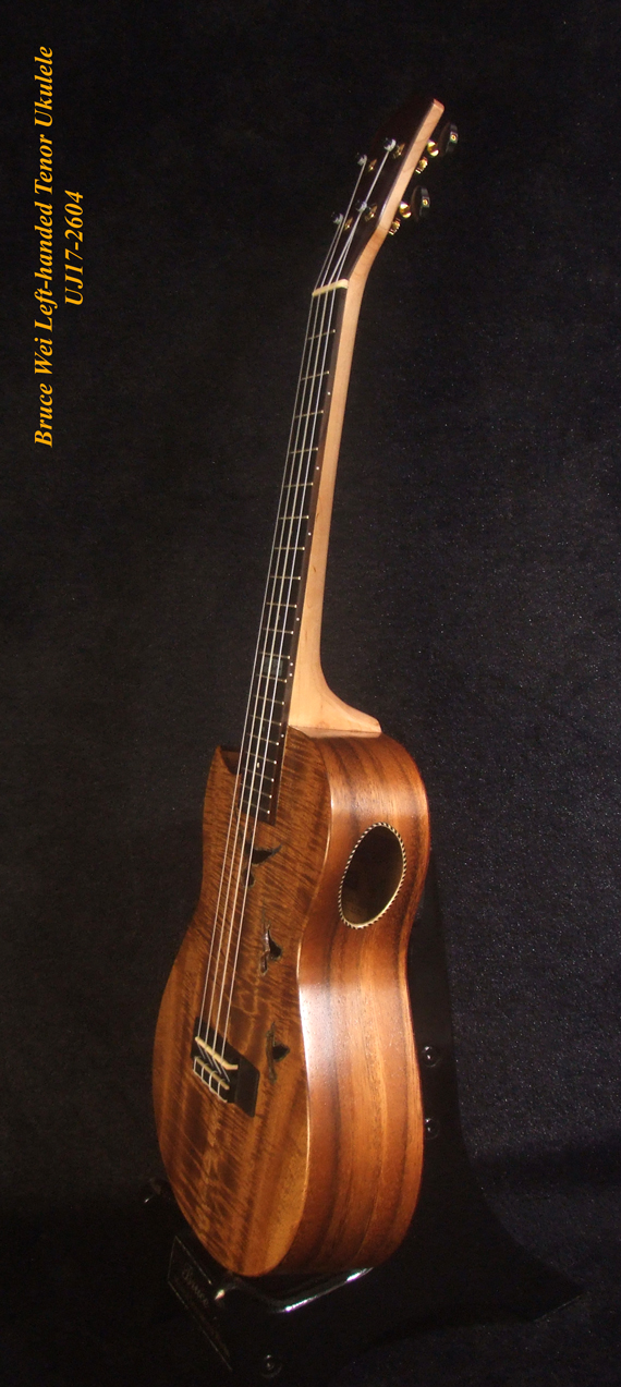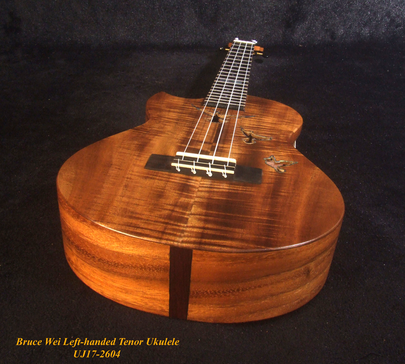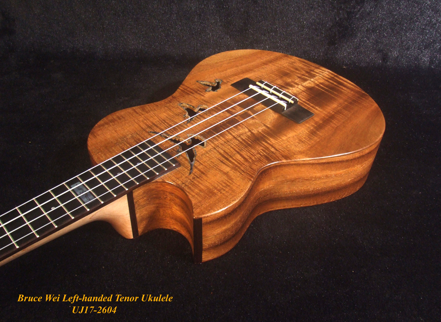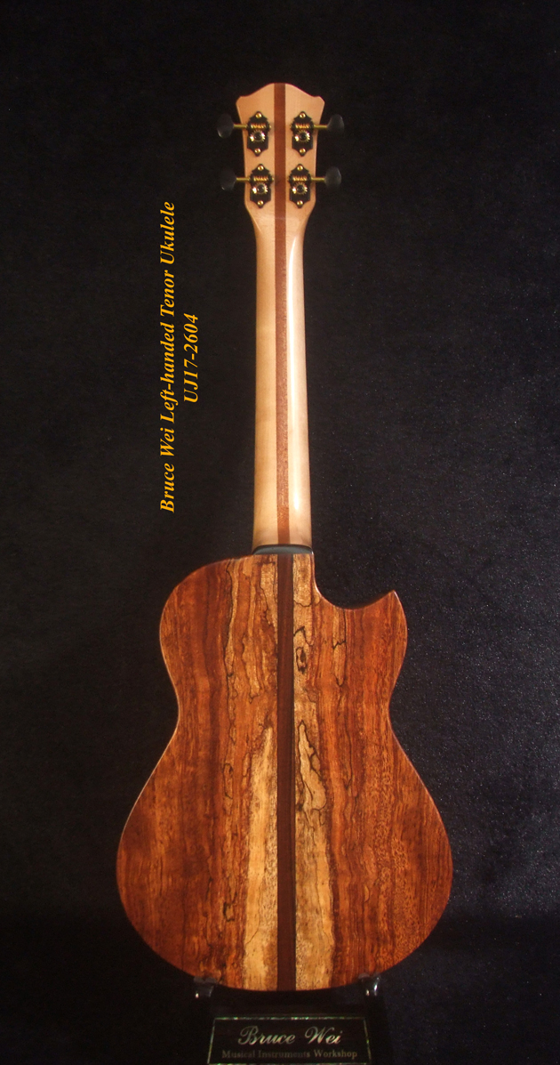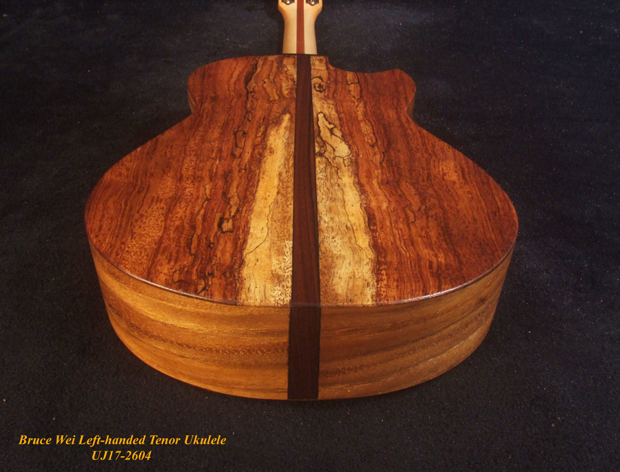 Left-handed Tenor Ukulele, Solid Curly Acacia, Spalted Rosewood, Bruce Wei UJ17-2604
