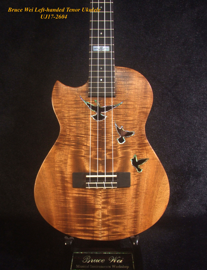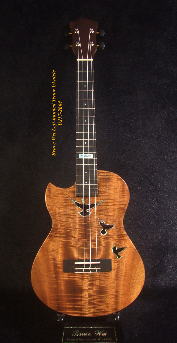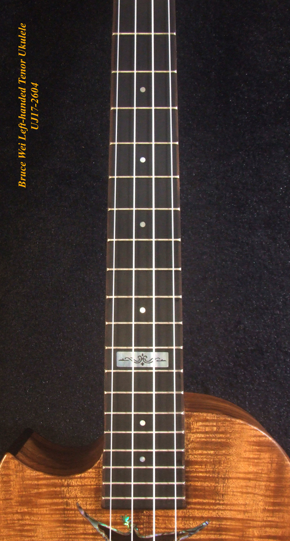 Handcrafted Left-handed Tenor Ukulele, Solid Curly Acacia, Spalted Rosewood, Doves Soundhole, Abalone Inlay, Soft-bag, Bruce Wei UJ17-2604