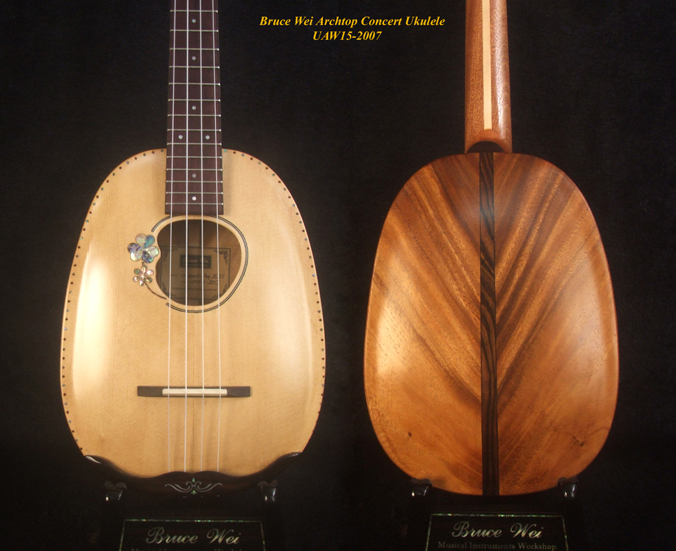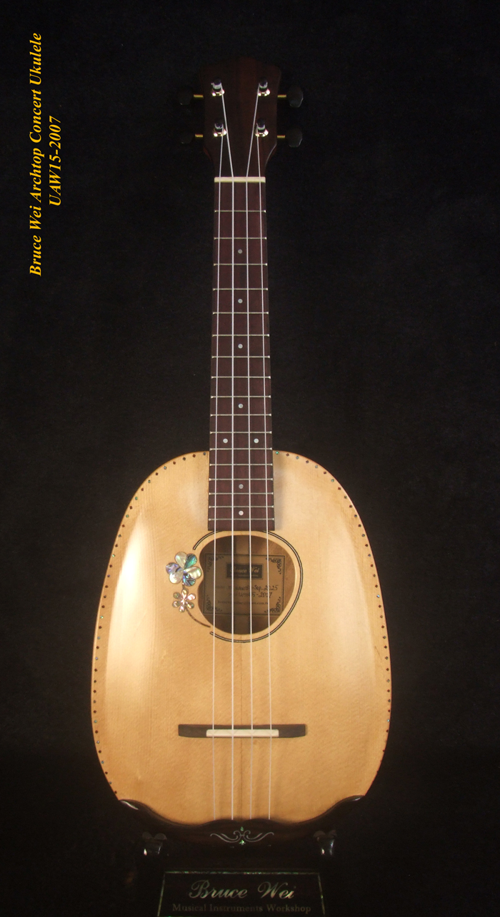 Pineapple Concert Ukulele, Solid Spruce, Acacia, Archtop, Archback, Bruce Wei UAW15-2007