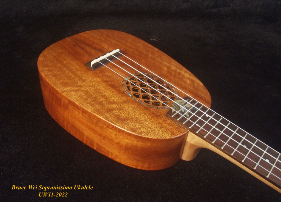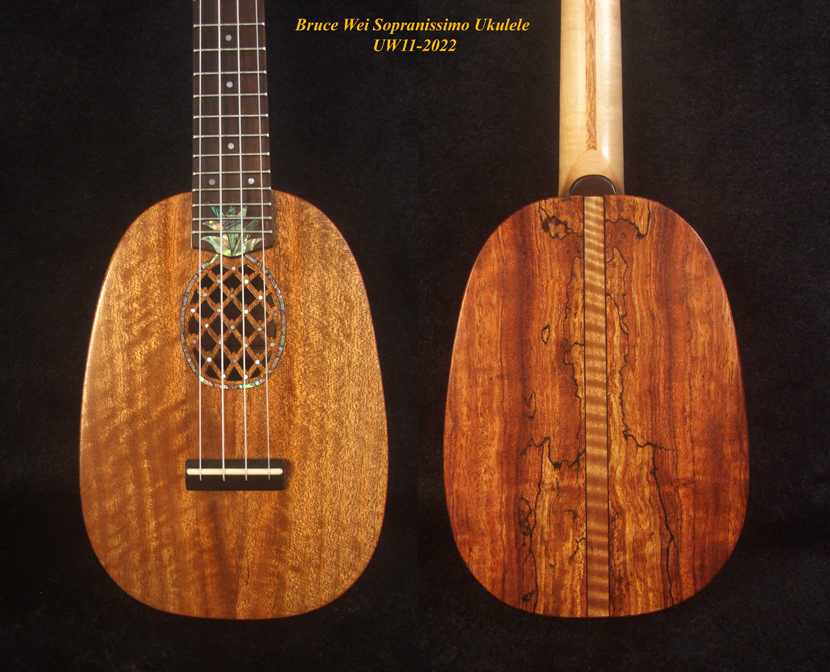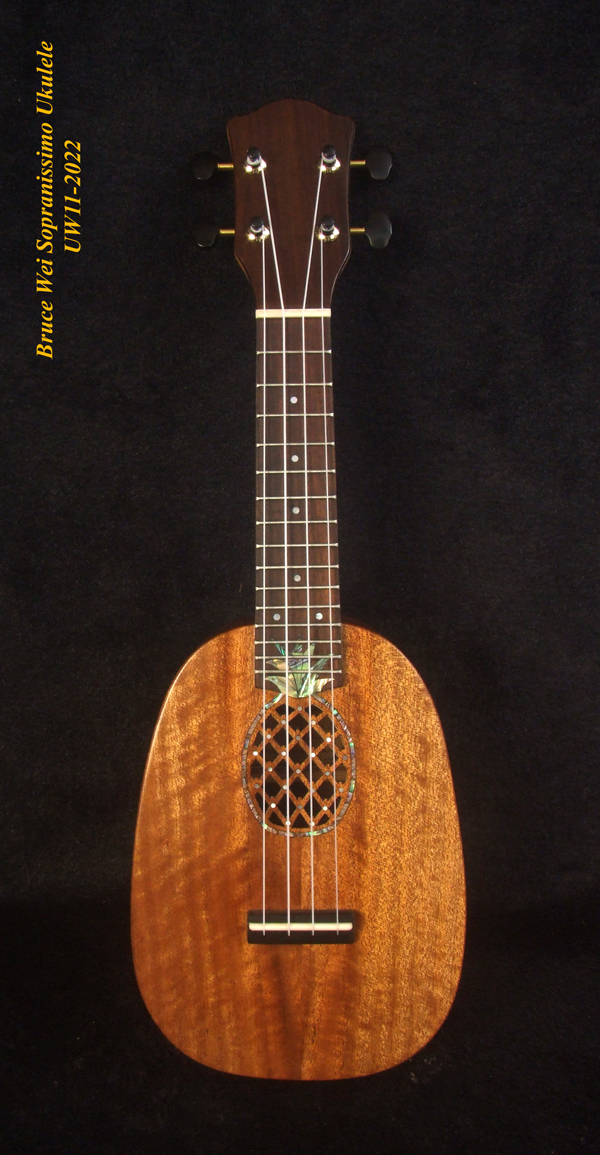 Pineapple Sopranissimo/ Pocket Ukulele, Solid Mahogany, Spalted Rosewood, Bruce Wei UW11-2022